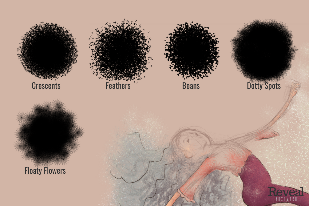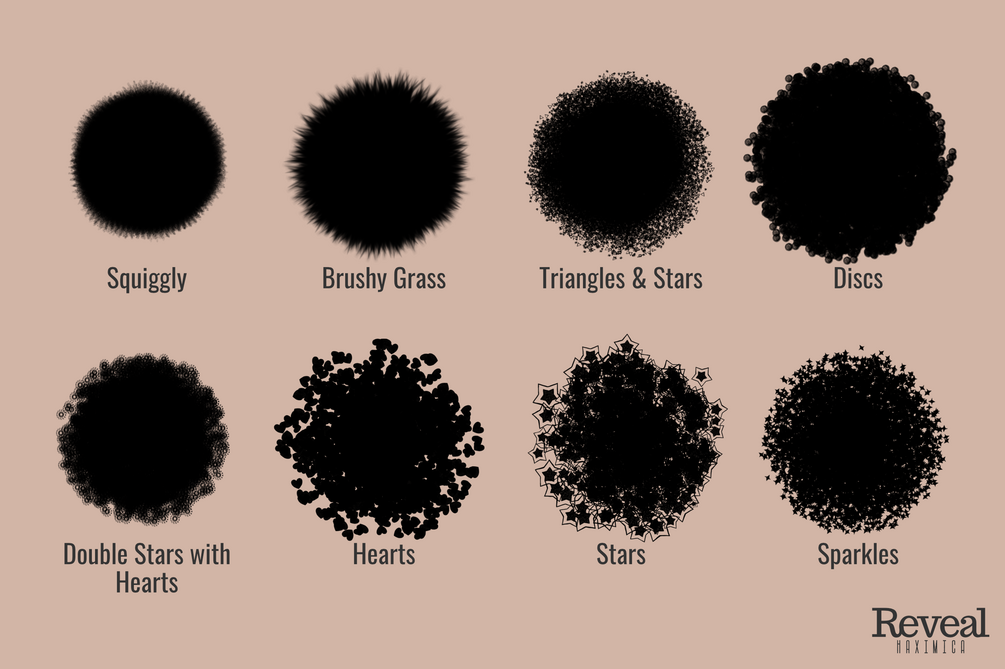 Reveal is a series of Procreate brushes designed for creating reveal videos. Each brush has been created with interesting textures and patterns to add flair to your video. They all can be scaled to extra large sizes to reveal your artwork with only a few strokes, ideal for transitions or hitting that 7 second long magic number for the algorithm.